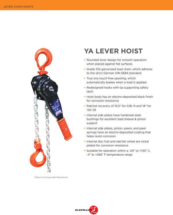 پولیفت زنجیری اتوماتیک 1,6 تن 3 متری مدل YA-160 الفانت ژاپن