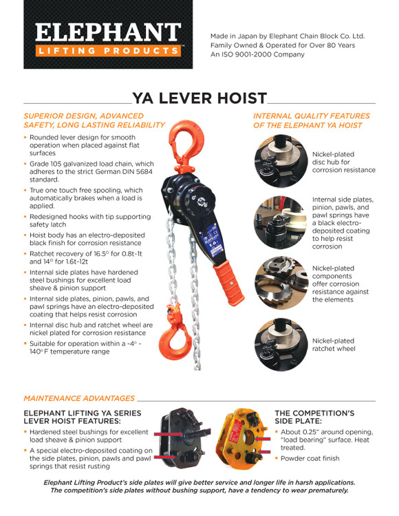 پولیفت زنجیری 3,2 تن الفانت ژاپن دارای قفل اتوماتیک است و به صورت خیلی راحت و آسان قابلیت تنظیم و آزاد کردن زنجیر دارد طول زنجیر پولیفت ها 1,5 متری و 3 متری بسیار مقاوم و ضد زنگ است .