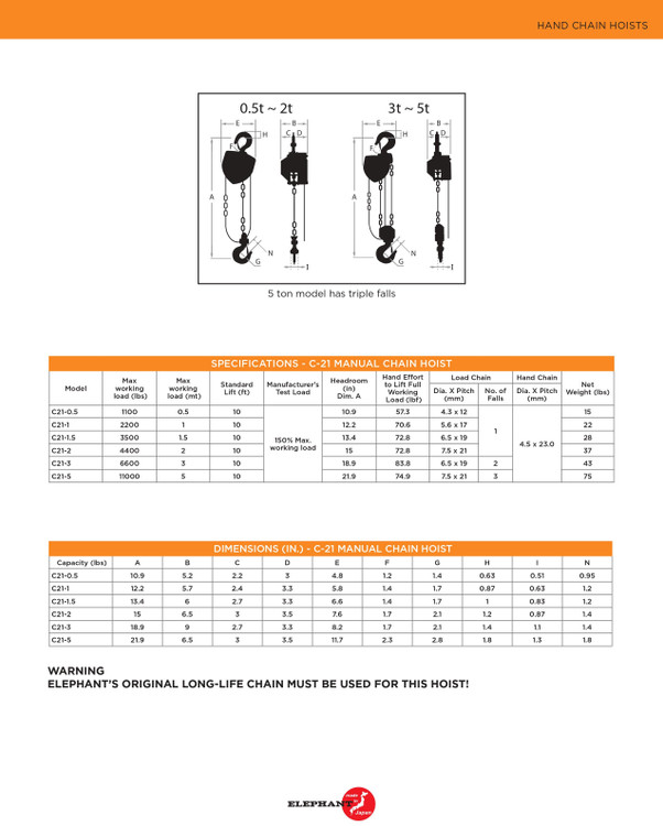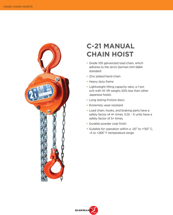 جرثقیل سقفی زنجیری 5 تن 3 متری C-21-5 الفانت ژاپن