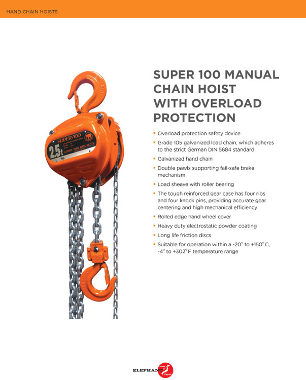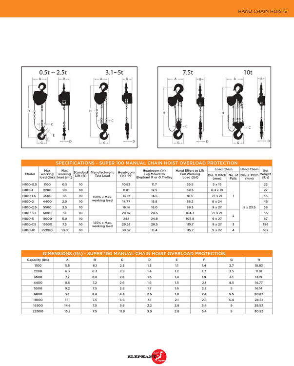 جرثقیل سقفی زنجیری 10 تن 6 متری مدل H100 الفانت ژاپن