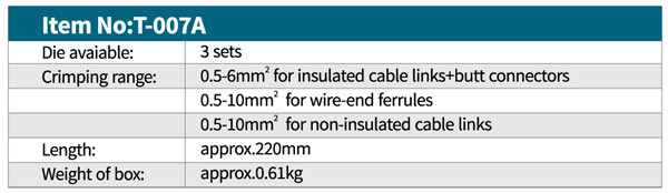 - قابلیت پرس کردن وایرشو از سایز 0,5 تا 10 میلی متر مربع