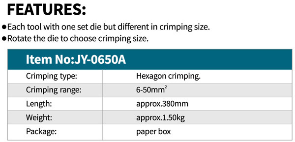 پرس کابلشو دستی از سایز 6 تا 50 میلیمتر مدل JY-0650A زوپر zupper