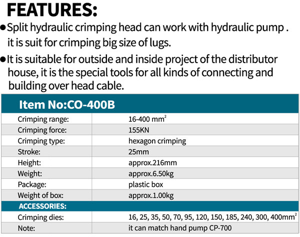 پرس کابلشو هیدرولیک پمپ جدا CO-400B زوپر zupper