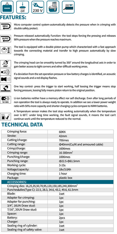 پرس هیدرولیک شارژی سه کاره مجهز به موتور براش لس (brushless) است که مشخصات کامل را در ادامه مشاهده میکنید .