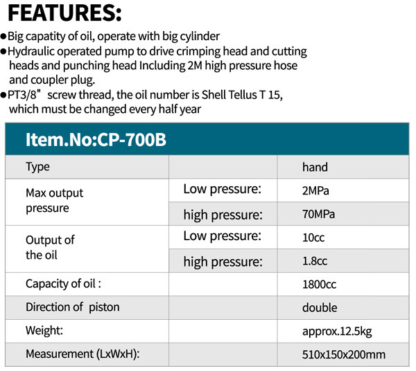 - پمپ های هیدرولیک دستی با فشار کاری 70 مگاپاسکال معادل 700 بار با حجم روغن 1800 سی سی را برای انواع تجهیزات هیدرولیک استفاده نمایید دارای 2 متر شیلنگ و کوپلینگ قابل اتصال به تجهیزات هیدرولیک.