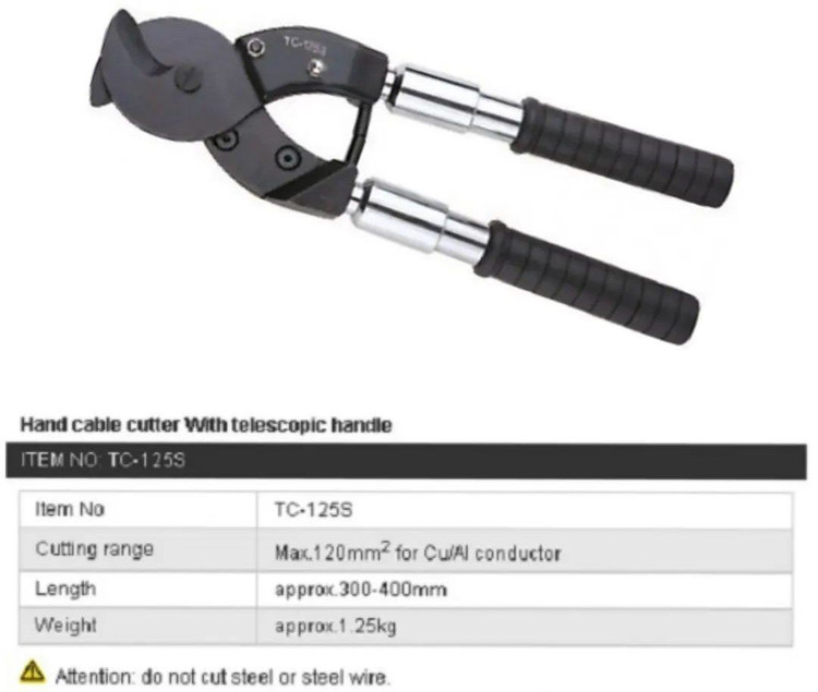 - قابلیت برش کابل مس و آلمینیوم تا قطر 120 میلیمتر مربع