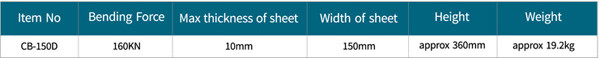 دارای قدرت هیدرولیک 160 کیلو نیوتن است که توانایی خم کردن ورق با ضخامت 10 میلی متر و عرض 150 میلی متر که جهت خم کردن ورق های مسی و آلمینیومی را به صورت عمودی استفاده می شود.