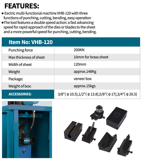 مزایای دستگاه ۳ کاره پانچ، برش و خم کن هیدرولیک VHB-120 زوپر: