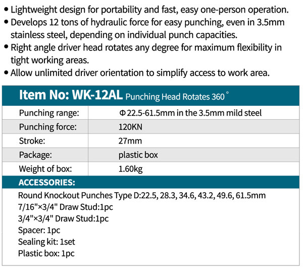 پانچ هیدرولیک پمپ سر خود کلگی فلکسیبل (360°) درجه WK-12AL زوپر ZUPPER