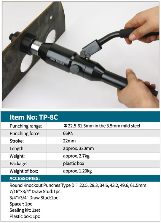 - این پانچ دارای پمپ داخلی ۷۰۰ بار است که به وسیله آن توان 6,6 تن را تولید می کند و دارای لقمه پانچ های ۲۲.۵، ۲۸.۳، ۳۴.۶، ۴۳.۲، ۴۹.۶، ۶۱.۵ میلیمتر گرد می باشد.