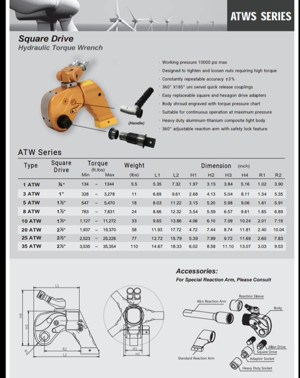 آچار هیدرولیک سری ATW سری آچار های درایوخور بهحساب می آید.این آچار دارای درایو "3/4 الی "۱/۲-۲و دقت تکرار پذیر+-3% می باشد.