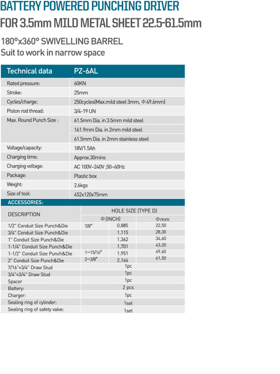 پانچ هیدرولیک شارژی از سایز 22,5 تا 61,5 میلیمتر مدل PZ-6AL برند زوپر ZUPPER