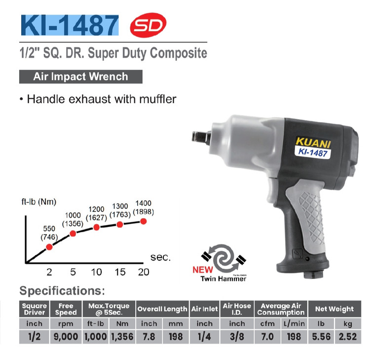 بکس بادی درایو 1/2 " اینچ 1365 نیوتن متر مدلKI-1487 برندکوانی KUANI تایوان