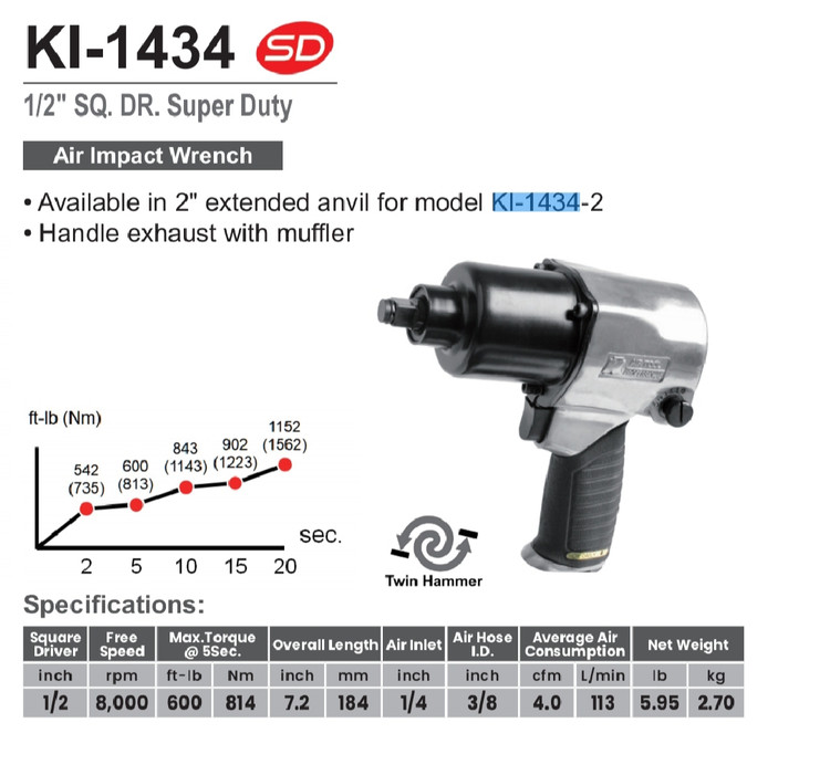بکس بادی درایو 1/2" اینچ 814 نیوتن متر مدل KI-1434 برندکوانی KUANI تایوان