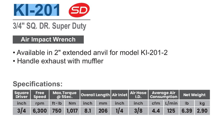 بکس بادی درایو 3/4" اینچ1017 نیوتن متر مدل KI-201 برندکوانی KUANI تایوان
