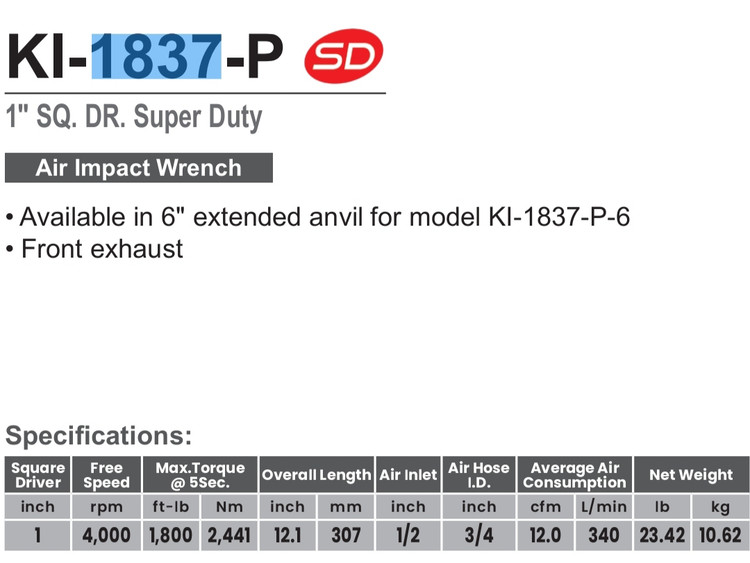 بکس بادی درایو 1" اینچ2441 نیوتن متر مدلKI-1837-P برندکوانی KUANI تایوان
