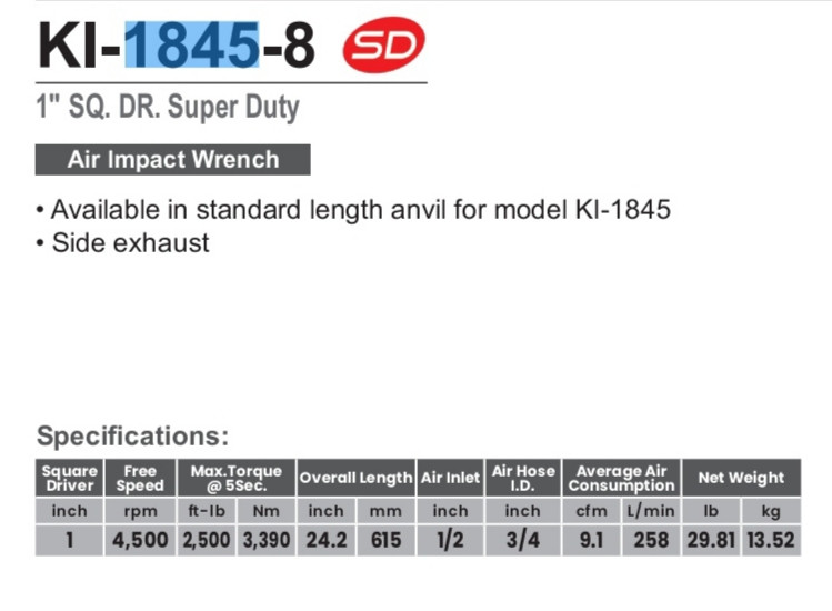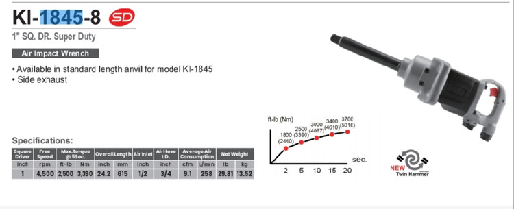 بکس بادی درایو 1 اینچ شفت بلند 3390 نیوتن متر مدل KI-1845-8 برند کوانی KUANI تایوان