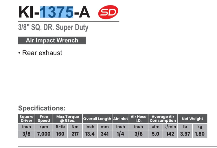 بکس بادی چپقی درایو ٣/٨"اینچ 217نیوتن مترمدل KI-1375 برند کوانی KUANI تایوان